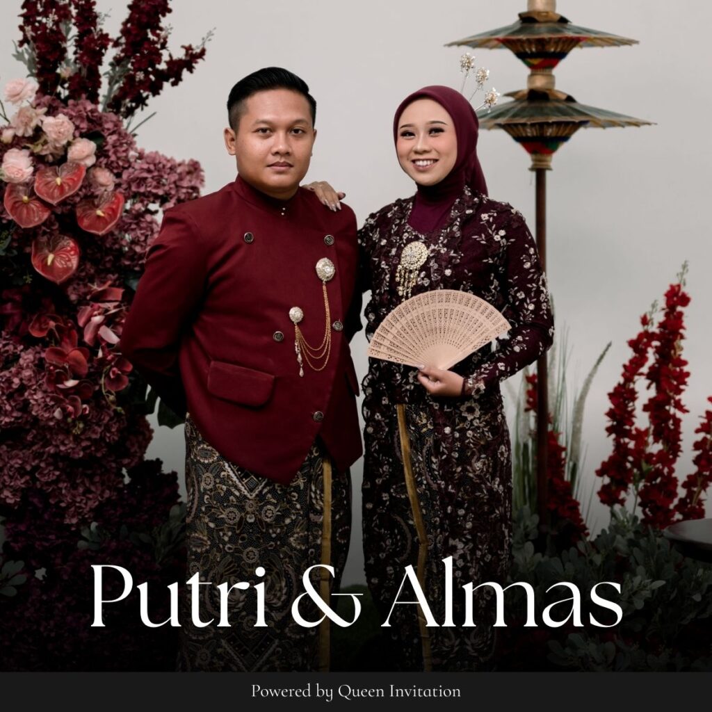 PERSONALIZED FOR Tamu Undangan WEDDING CEREMONY OF Putri & Almas Minggu, 29 Maret 2026 We step into a world made just for the two of us.We humbly ask for your warmest blessings. Save The Date 00D 00H 00M 00S ADD TO CALENDER Di antara tanda-tanda (kebesaran)-Nya ialah bahwa Dia menciptakan pasangan-pasangan untukmu dari (jenis) dirimu […]